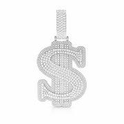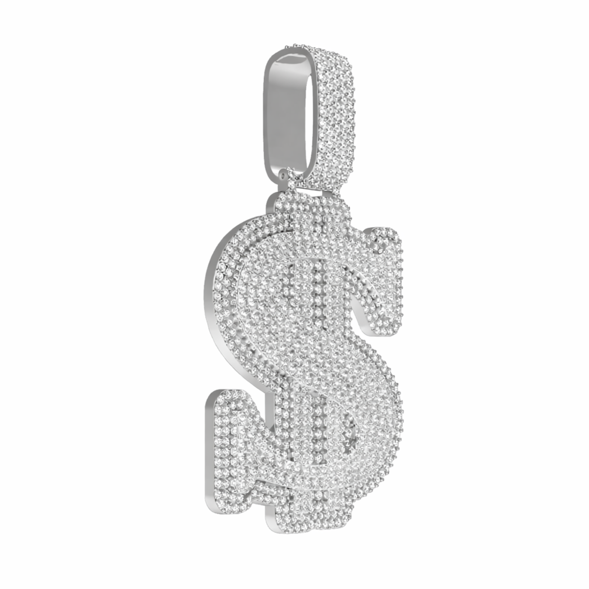 Every curve of the dollar sign is covered in precision-set stones, creating maximum brilliance from every angle. The thick layered design and heavy bail make it perfect for Cuban or rope chains, giving a strong luxury hip hop look.