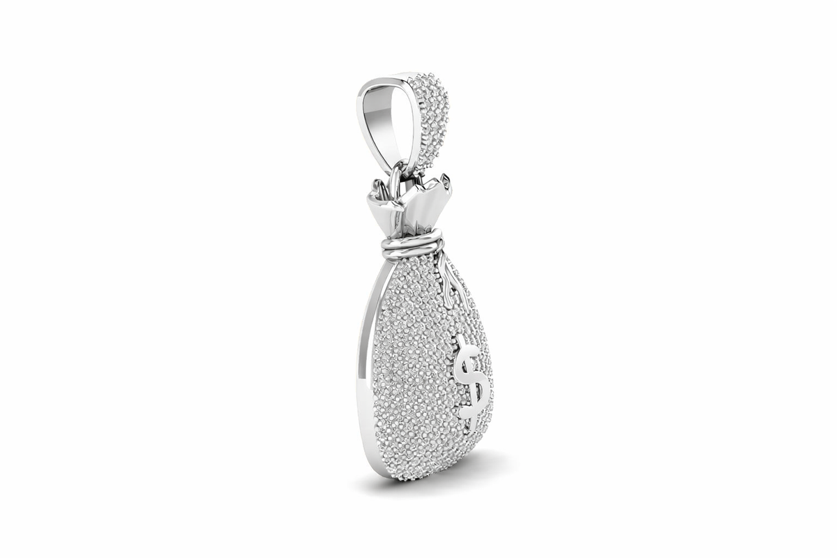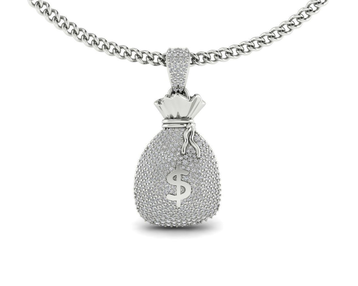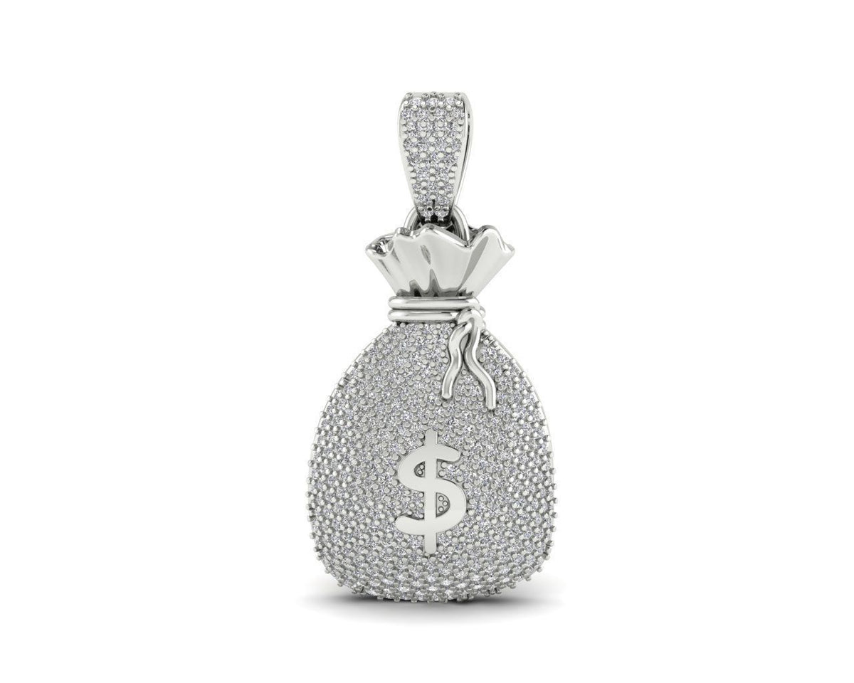 Add a bold touch of luxury to your style with this stunning Dollar Bag Pendant, designed to symbolize wealth, success, and confidence. Crafted with a premium silver finish and fully iced with high-quality stones, this pendant delivers a powerful shine from every angle. The detailed money bag design with a dollar symbol makes it a perfect statement piece for everyday wear or special occasions.