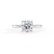 The hidden halo of delicate accent stones beneath the center diamond adds an extra layer of sparkle—visible from the side, creating a luxurious surprise. Set on a smooth, high-polish band, this engagement ring is ideal for those who appreciate subtle glamour with exceptional brilliance.