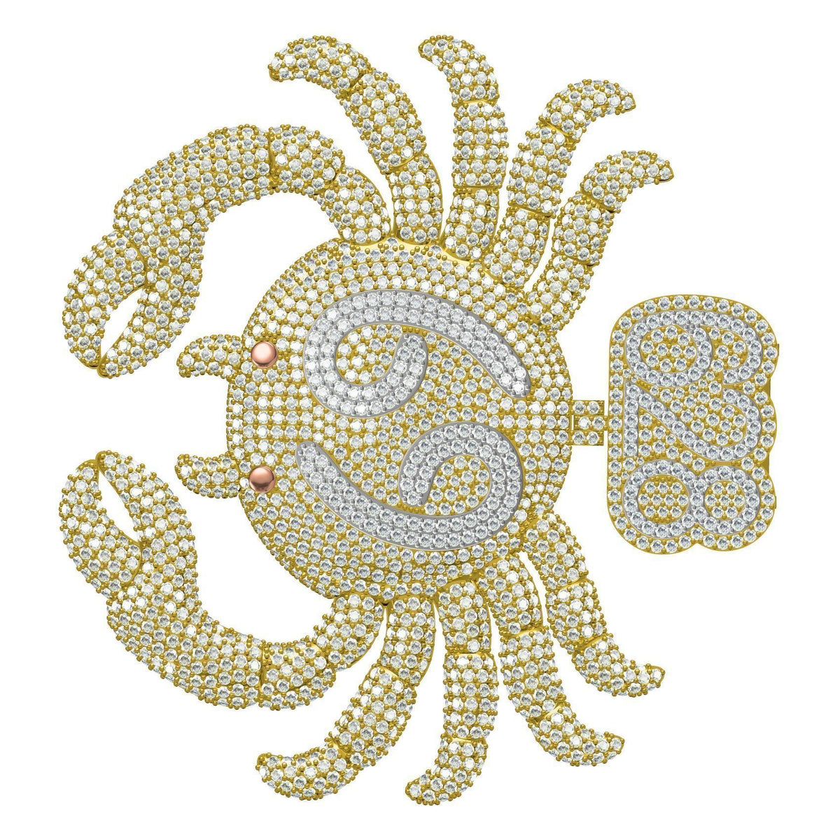 Celebrate your zodiac power with this Cancer Zodiac Crab Icedown Hip Hop Pendant, designed for those who represent strength, emotion, and ambition. This fully iced statement piece features a detailed crab design with a bold “69” Cancer zodiac symbol at the center and elevated number detailing on top.