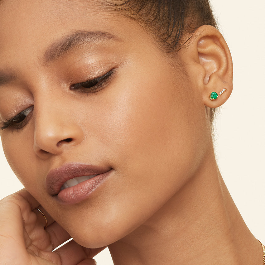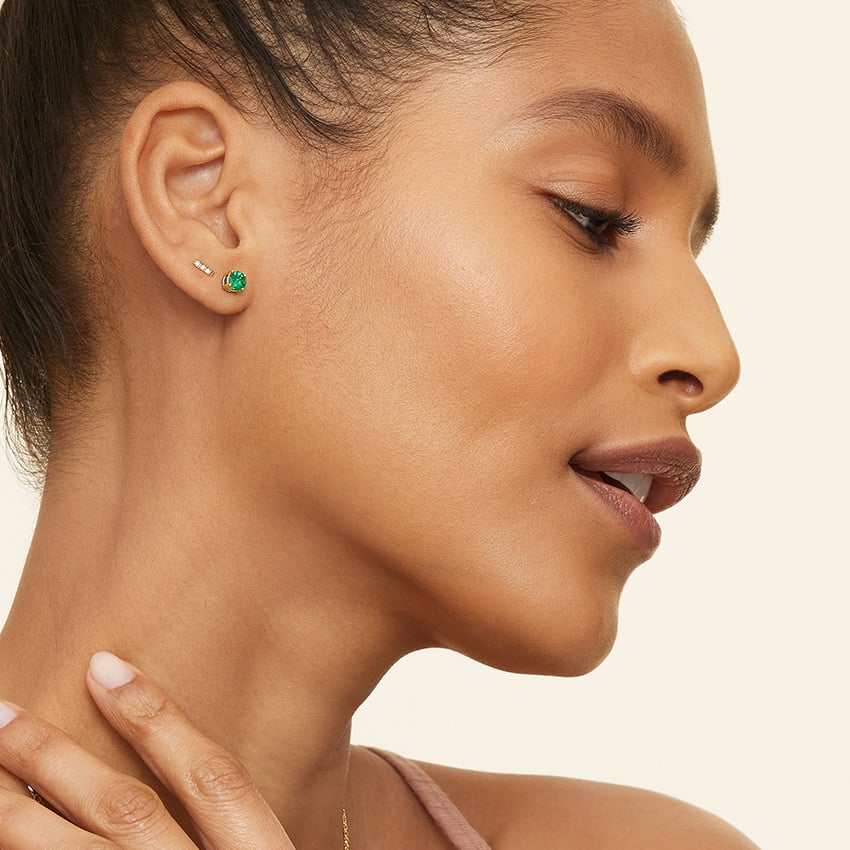 Round Cut Diamond Bar Stud Earrings Minimal Luxury Jewelry